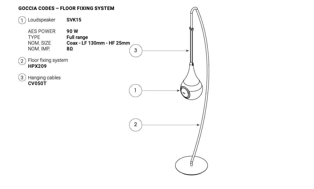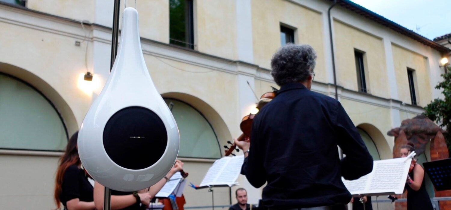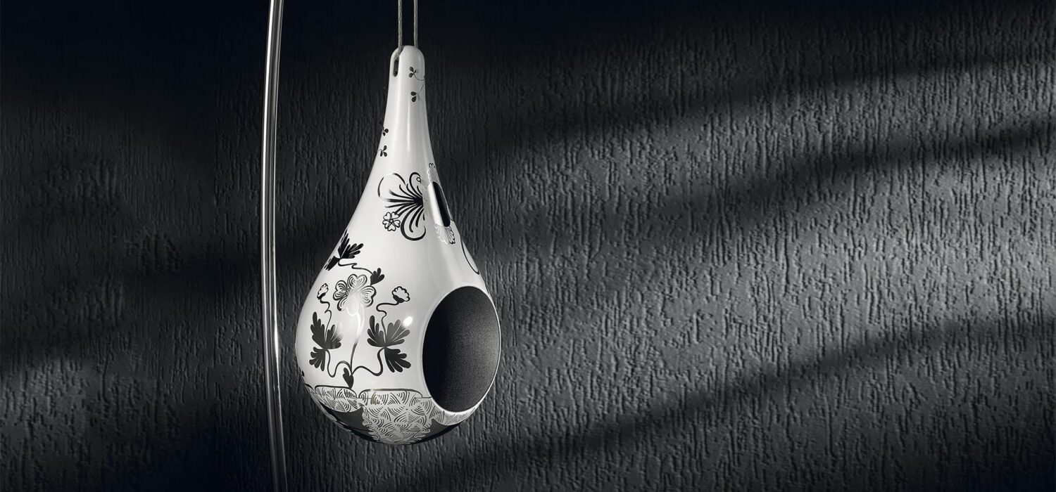 Goccia on ainus rippkõlar, mis ühendab loomuliku heli hajumise disaini ja kunstiga. Dekoratiivne sisustuselement, mis on täielikult valmistatud Faenza keraamikast, ajatu disainiga ning maapinnast kõrgemal tänu tipptasemel komponentidele.
