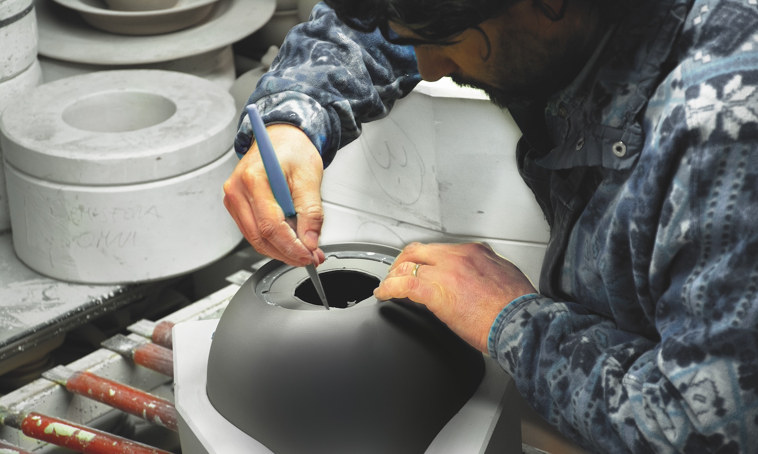 - Käsitööna valmistatud keraamiline korpus, toodetud Faenzas, Itaalias