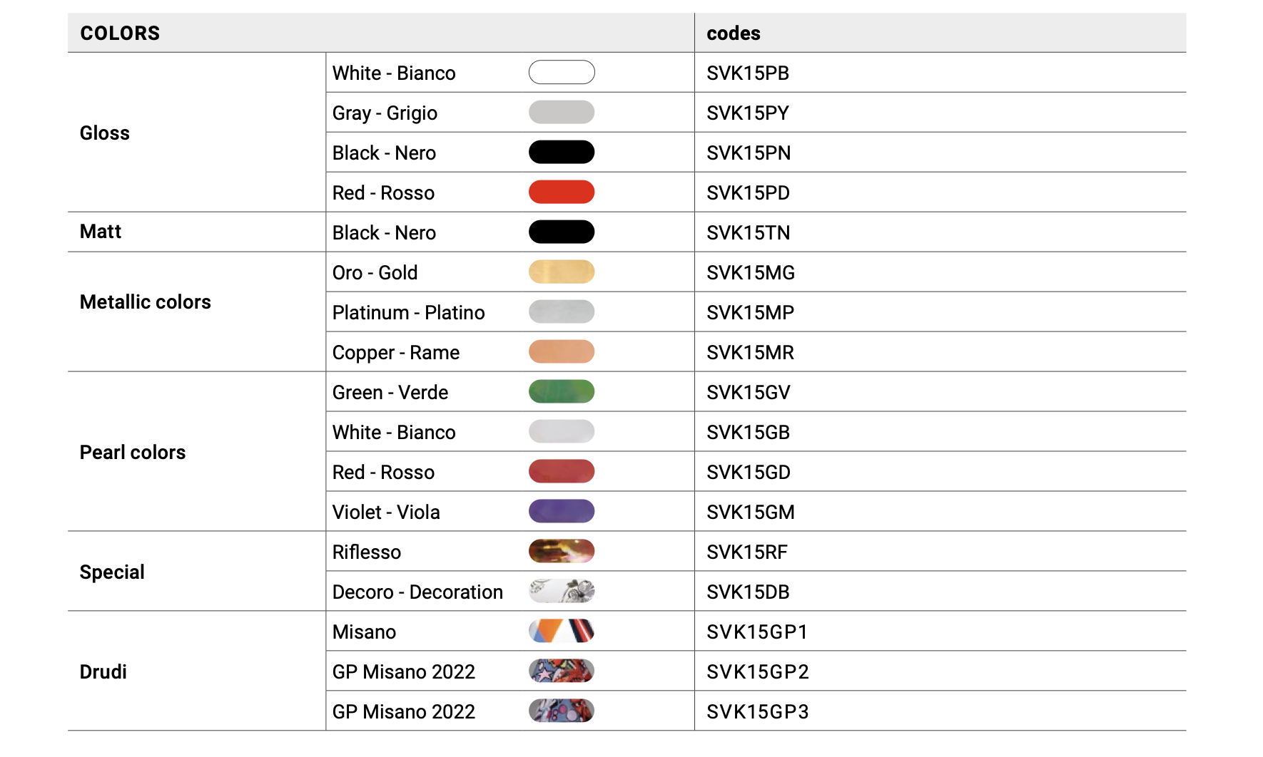 - Lai valik viimistlusi ja värve, sh läikiv, matt, metallik, pärlmutter ja erikujundused